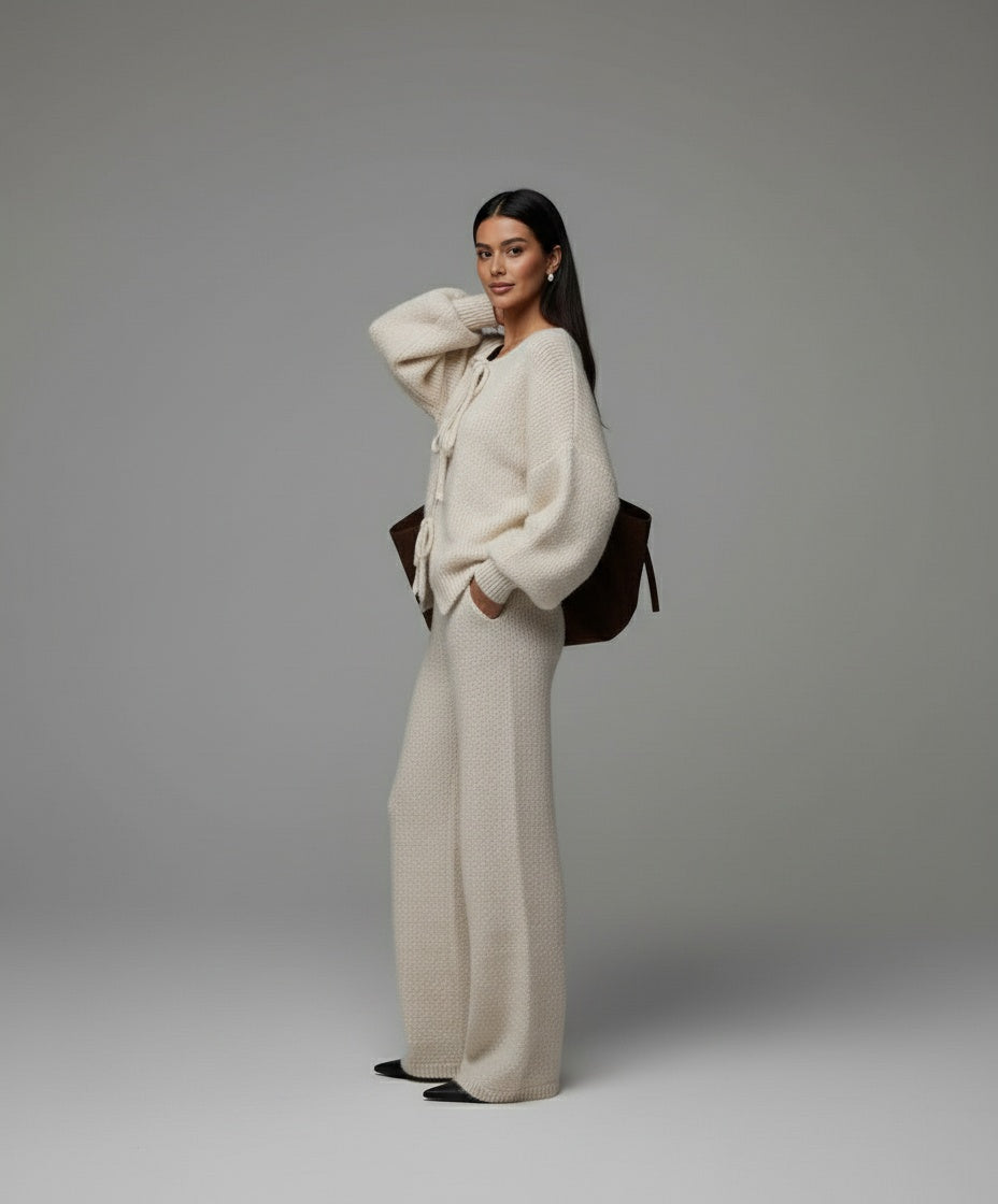 Charming and feminine, this knit cardigan features a delicate bow detail that elevates its simple silhouette. The beige shade ensures timeless versatility, while the lightweight construction makes it perfect for pairing with both casual and semi-formal outfits.